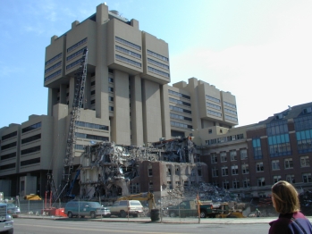building - mostly gone. They are replacing it with a new Molecular Biology