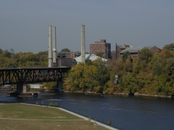 This is one of two University of MInnesota steam plants. The railroad bridge