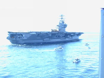 Taken from one of the battle ships, you see the aircraft carrier